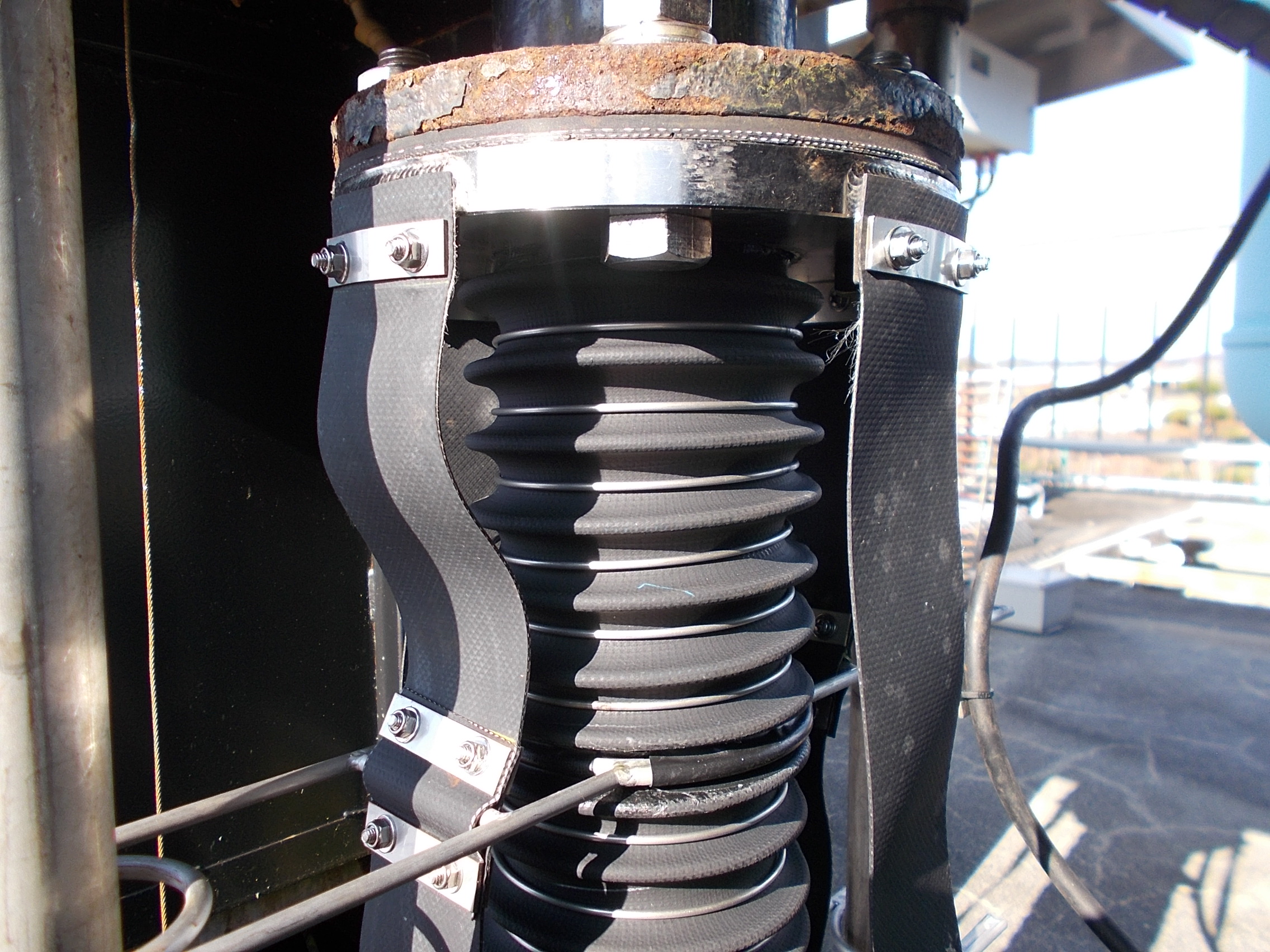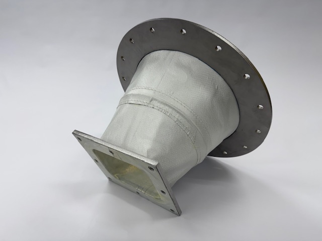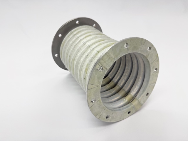 汚泥し渣処理施設向け ファン吸排気用ジャバラ 外面アルミガラス+内面PTFE No,27008